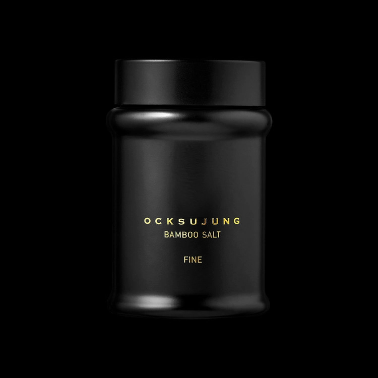 These results confirm compliance with both domestic and international food safety expectations. Design The design of Ocksujung Bamboo Salt is not mere decoration. Every bottle, every line, every tone of color has been shaped with the discipline of a practitioner, the spirit of an artist, and the precision of a designer and craftsman. The Ocksujung symbol was created by master calligrapher Yoon Byung-jo (b. 1946). Inspired by the curve of a bamboo leaf bending and rising again, the brushstroke reflects the rhythm of nature. Each stroke carries a sense of life and balance. More than a logo, it serves as Ocksujung’s signature — a symbol of harmony between nature and human intention. The structure of the glass bottle draws inspiration from the nodes of bamboo. Designed with refined precision, its gentle curves express flexibility, while the firm central axis conveys inner strength. It reflects the natural principle of “strength within softness.” The deep black tone represents depth and stability. This vessel is not merely a container for bamboo salt; it is the meeting point of heritage, philosophy, and craftsmanship. Through careful engineering, balanced proportions, repeated testing, and meticulous production, the final form embodies both aesthetic clarity and functional integrity. Ultimately, the design of Ocksujung Bamboo Salt represents the elevation of function into art — and art into philosophy — where the spirit of an era quietly resides within its form. How to Use Ocksujung Bamboo Salt offers remarkable versatility. This high-purity bamboo salt may be used in place of ordinary salt to elevate the depth and complexity of everyday cuisine. The fine grade is crafted through precise milling, preserving the structure of traditionally roasted 9-times bamboo salt while refining it into a premium culinary ingredient. It delivers a delicate texture and layered flavor unlike any conventional salt. Traditionally, bamboo salt has also been enjoyed by allowing a small amount to dissolve slowly on the tongue. According to personal preference, a minimal quantity of either fine or coarse crystals may be placed gently on the tip of the tongue to experience its depth and subtle aroma. In that moment, the sensation is clean and awakening — reminiscent of early morning clarity. As one becomes accustomed to its taste, it is recommended to enjoy small amounts regularly rather than consuming larger quantities at once. A pinch dissolved into warm ginger tea can also offer a gentle and balanced way to appreciate its natural character. Ocksujung Bamboo Salt Powder continues a long-standing tradition in Korea, where bamboo salt has been incorporated into daily oral care routines. Such mindful use allows the essential qualities of bamboo salt — purity, craftsmanship, and balance — to be experienced in their most natural form. Mandatory Product Information Product Type Roasted and Fused Salt (Traditional Bamboo Salt) Ingredients 100% Roasted and Fused Salt Nutrition Information (Per 1 g serving)